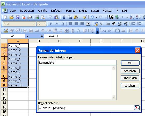 Namen definieren |