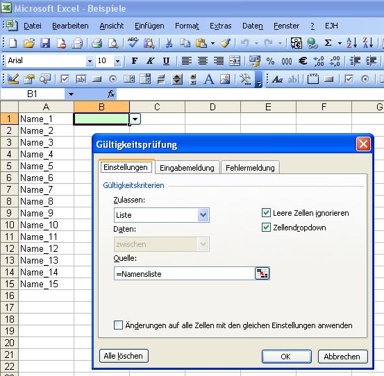 Hier beispielsweise für Zelle B1