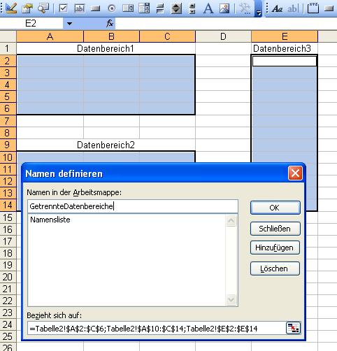 Excel bietet die Möglichkeit Datenbereichen einen Namen zu geben, über den sie später angesprochen werden können.