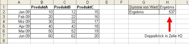 Führen wir nun einen Doppelklick im Ergebnisfeld, hier Zelle H2 aus, erhalten wir ein neues Tabellenblatt in der gewünschten Struktur.
