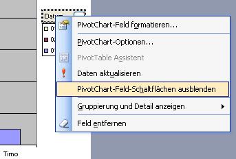 Aber Achtung - jede Änderung wirkt sich unmittelbar auf die eigentliche Pivottabelle aus. Wird das Datumsfeld aus dem Diagramm gezogen, so fehlt es auch in der Pivottabelle.