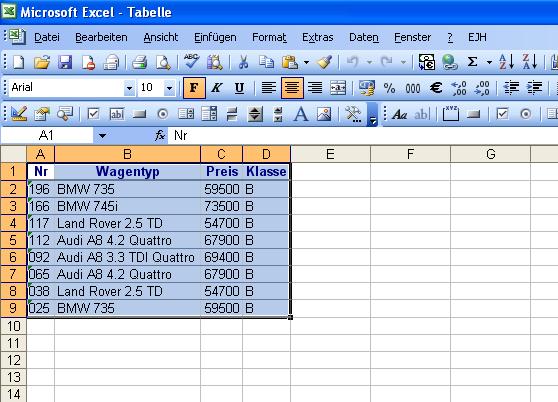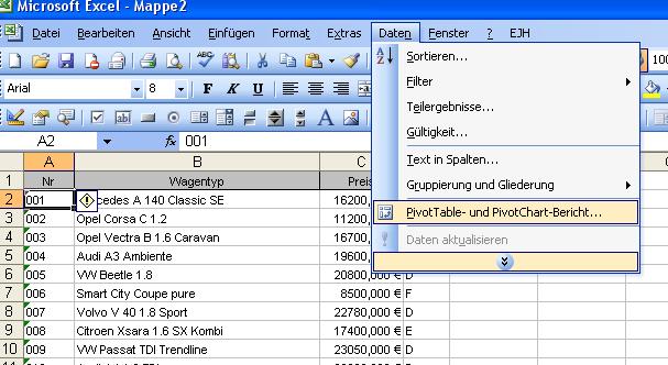 Klick 1) Cursor irgendwo in den Datenbereich z.B A2