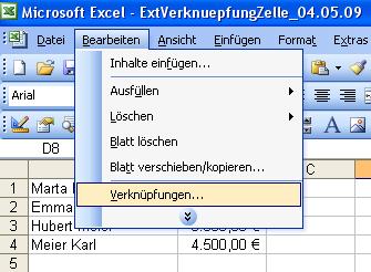 Unter dem Menüpunkt: Bearbeiten - Verknüpfungen, können wir diese bearbeiten.