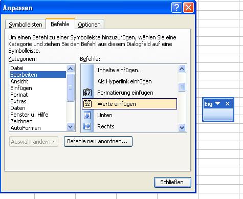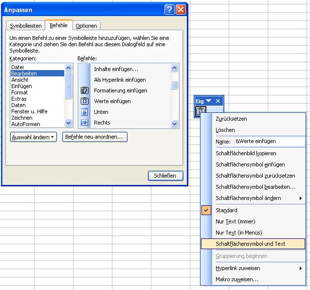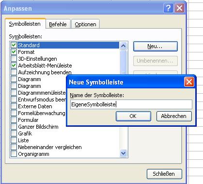 Da ich persönlich eine eigene Symbolleiste mit den wichtigsten zusätzlichen Excelfunktionen bevorzuge, hier zunächst der Weg für das Erstellen einer eigenen Symbolleiste.